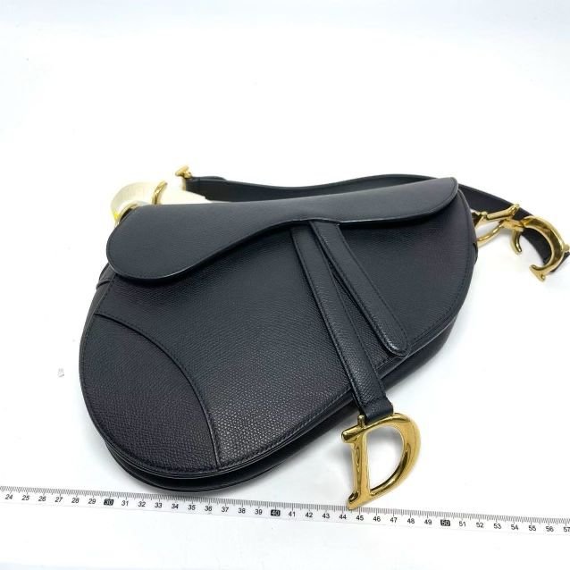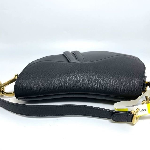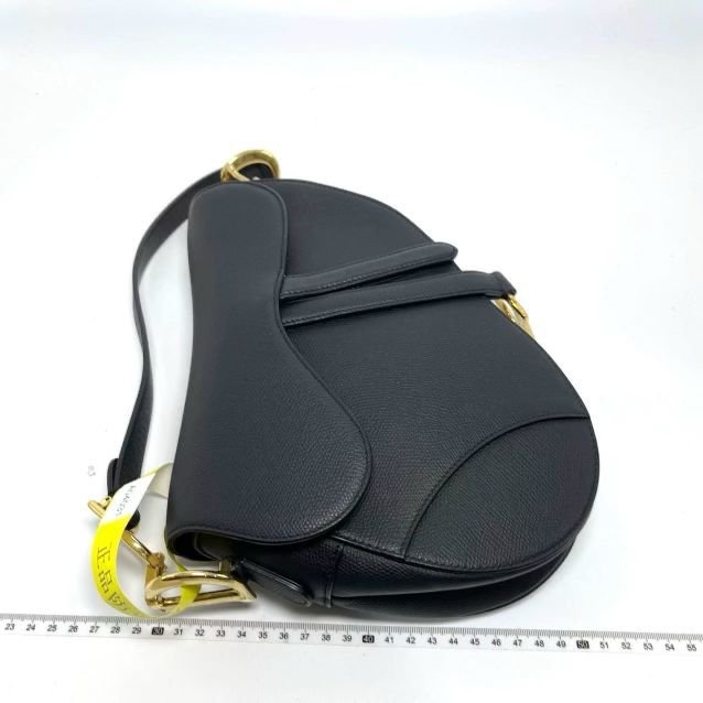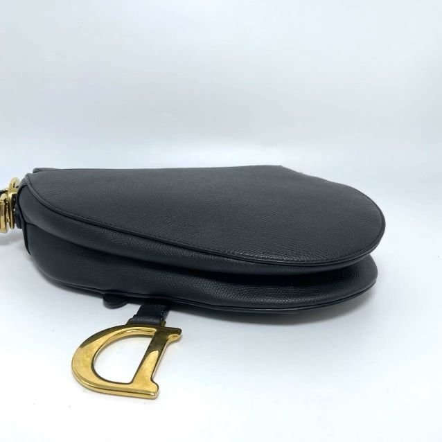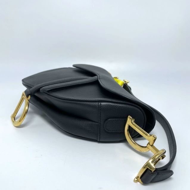 Black textured leather. Excellent condition medium black saddle bag and gold hardware.